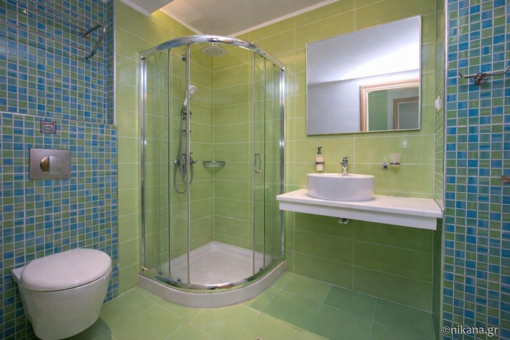 U većem (55m2) zelenom apartmanu, može da boravi do šest odraslih osoba. On se isto nalazi u prizemlju. U dnevnoj sobi se nalazi jedna ugaona sofa na razvlačenje i jedan francuski krevet, dok je drugi francuski krevet u spavaćoj sobi. Kuhinja je opremljena sa velikim frižiderom i rešoom, a u kupatilu je tuš kabina.