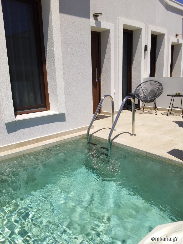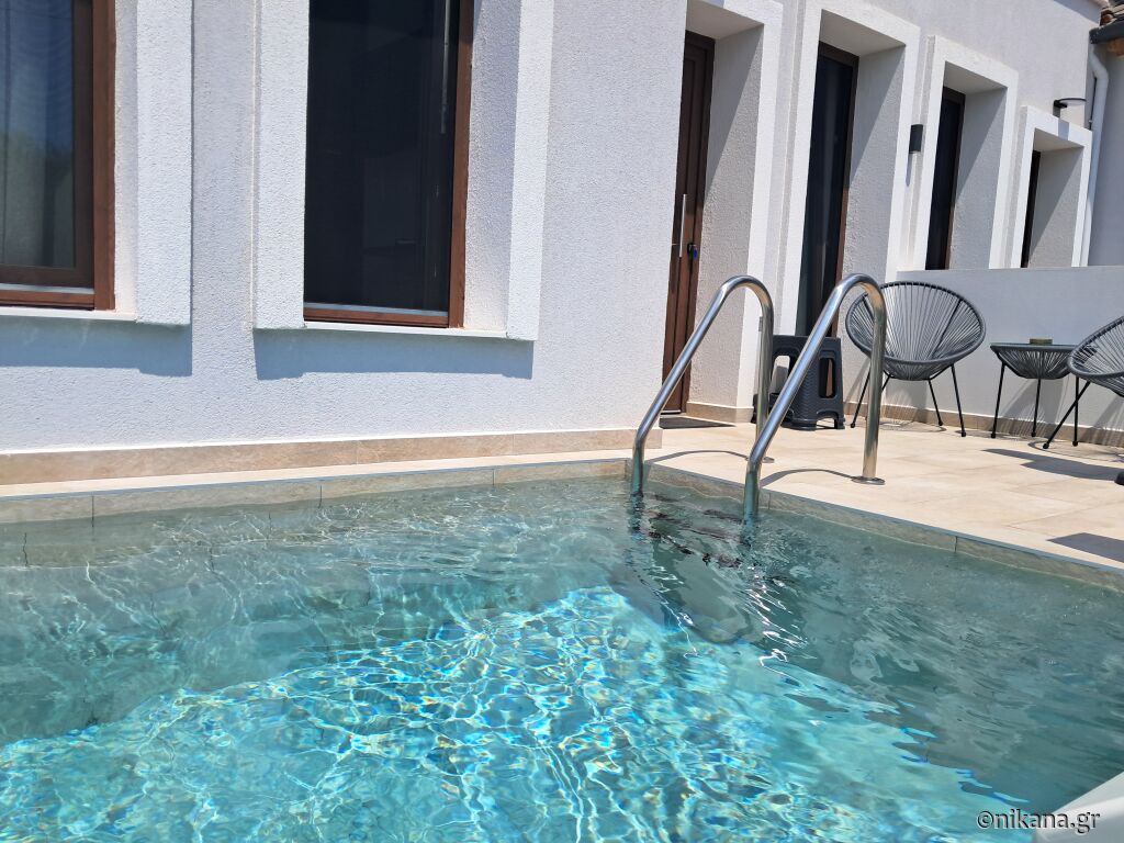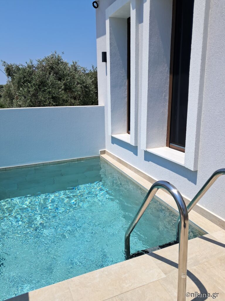 U okviru ovog smeštaja nalaze se dva studija u visokom prizemlju (sedam stepenika iznad nivoa zemlje) koji su namenjeni za smeštaj najviše dve odrasle osobe i dvoje dece. Opremljeni su francuskim ležajem i sofom za dve osobe, a svaki od njih ima i privatni bazen.